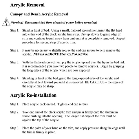 Remodel your ESB Avalon Tanning Bed made in 2012 or later to improve UV light transmission by installing brand new canopy or bench acrylic! This is premium grade rigid replacement acrylic that is shipped flat and not rolled up in a box like other lower grade acrylic replacements.