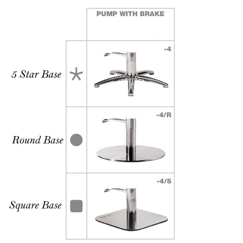 This Italian made stylist chair is outfitted with one of the following, flat round, square or a five star bases.