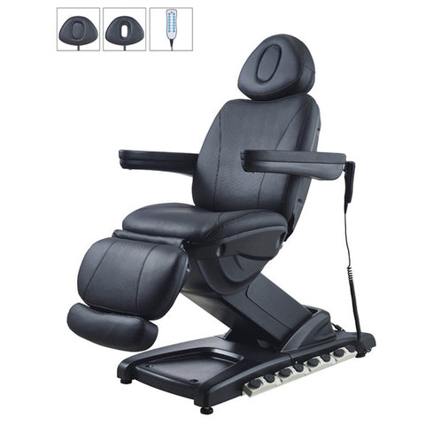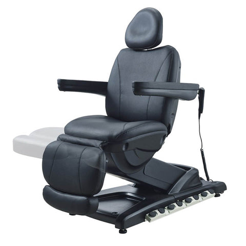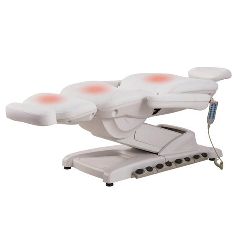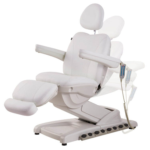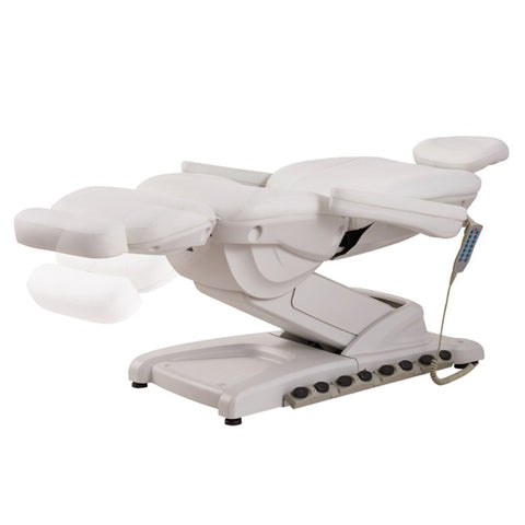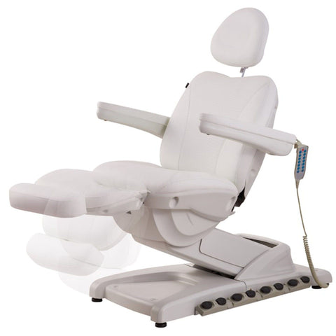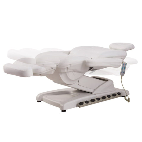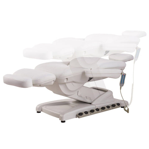 Experience our revolutionary full-electrical all-purpose beauty bed/chair Apollo, fitted with 4 electro-hydraulic motors controlled by hand or foot. This newly updated unit features thermal heat top, foot controls, finer adjustments, quieter operations and sleeker appearance fully integrated into a simple operating remote.