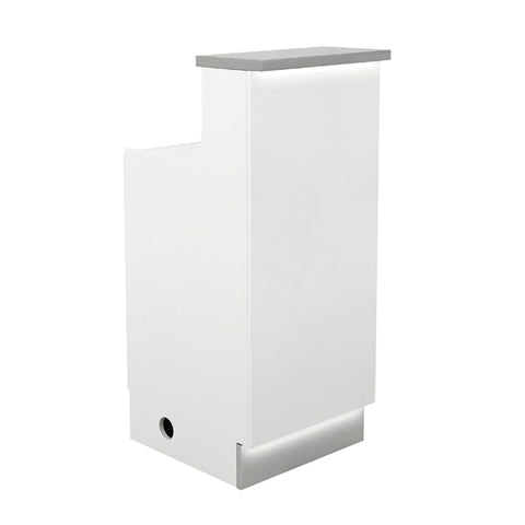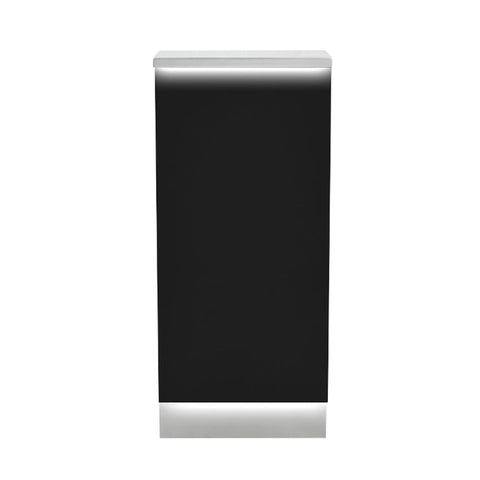 Storage Cabinets with shelves and a lockable drawer for valuables. Illuminating LED lights at both top and base further highlights the Reception Desk's great design.