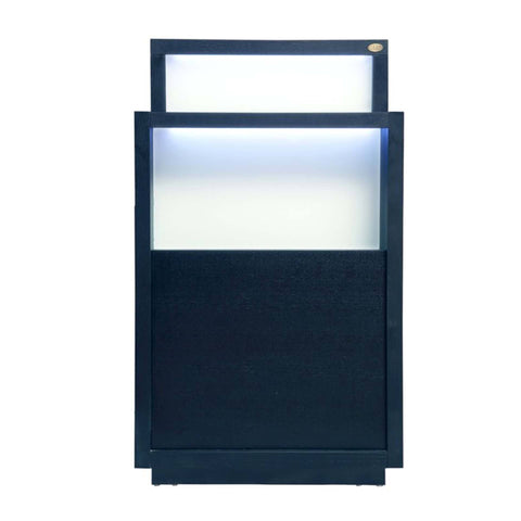 - Tempered frosted glass panel with LED lighting system with small Product Display Area.