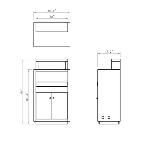 - Product Dimension: 25” Width x 42” Height x 15.5” Depth.