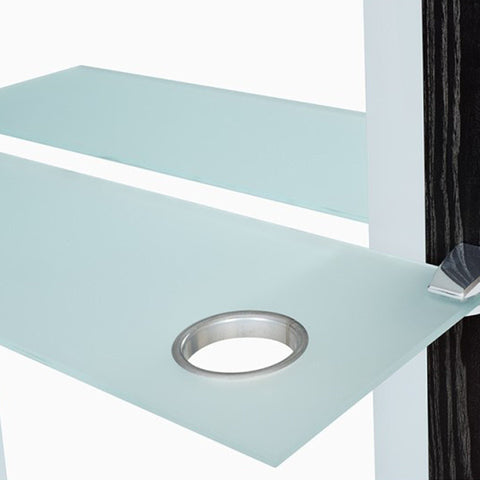 The unique single-side styling unit comes with geometric style wood finish. The Luna II creates a stunning unit that is further enhanced by subtle white LED lighting. The sleek and smooth frame design along with a glass shelf integrated with a dryer holder makes the Luna II unit a must have.