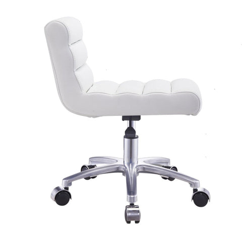 This elegant salon stool with back rest would compliment any salon. While its gas-lift system, solid base and internal metal stabilizers allows it to support up to 300 lbs.