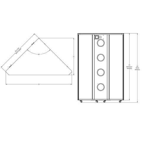 - Dimensions: 79” high x 29.5” deep x 55” wide (81” high with wheels).