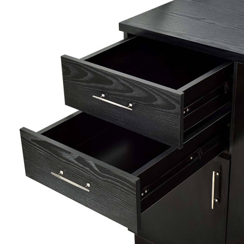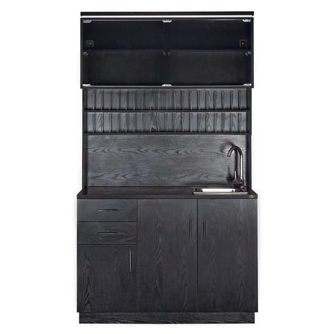 Dir introduces to our clients our Color Bar Maple with wash sink. Maintaining a clean space for mixing & combining chemicals has never been easier. This unit features spacious cabinets, drawers, and stacking hair color storage slots. The counter top is made from water-proof wooden material for easy-to-clean work-space along with long lasting use, with a bonus pull out cabinet to house trash can for unwanted trash.