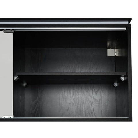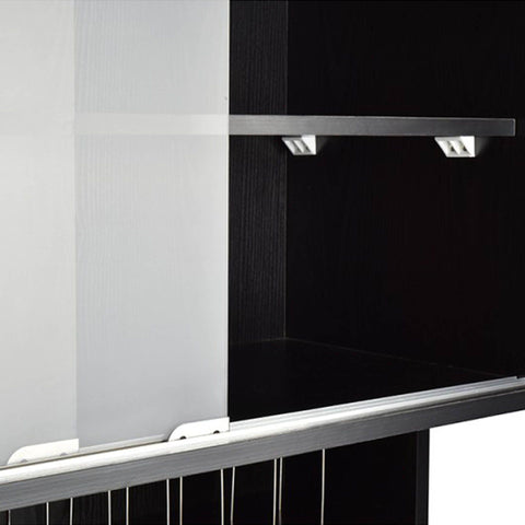 This units includes a chemical storage rack below and spacious glass sliding door cabinets to house towels and display shelves for products. The stainless steel sink also comes with a single handle faucet and drain assembly, all water supply lines included.