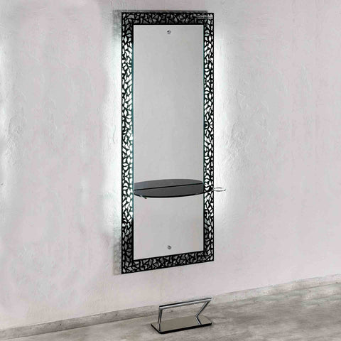 The Salon Ambience MI/030 Fiji Styling Station is Manufactured in Italy and is a perfect match for any high-end salon. This styling station is back-lit with 2 magnetic neon white bulbs and consists of a rectangular frame, decorated with a pattern available in three colors; light grey, white and black. Located in the middle of the styling unit is a work shelf with your choice of seven different styles to perfectly match your salon's decor'. The Fiji comes installed onto a metal frame, and includes a free footrest and hairdryer holder.